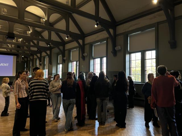 The session opened at 2pm with a warm welcome from Emily Hargreaves, a second-year student and FOW student ambassador. Emily’s words framed the event as a showcase of student research, professional advice, but mainly a site to bridge art, ideas and community.
